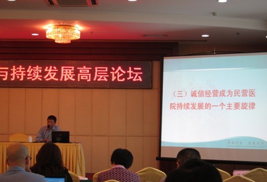我院左建生总裁在大会上作《诚信是民营医院发展的宝贵财富》的经验交流