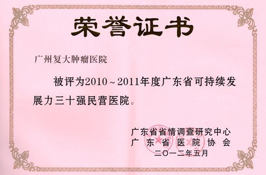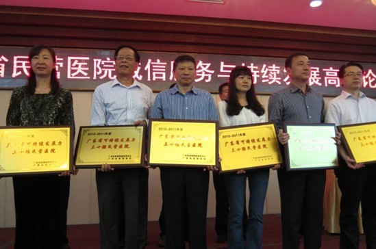 大会最后进行2010—2011年度广东省可持续发展力三十强民营医院的授牌仪式,我院与东莞康华医院等三十家医疗单位荣获此奖项。