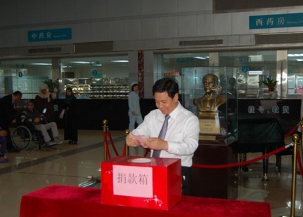 2013年11月16日早上9时30分,复大肿瘤医院举行为援助菲律宾台风灾难受害者的捐款活动,在左建生总裁、徐克成总院长、刘建国总经理、牛立志院长等领导的带领下,全体医务人员及后勤行政人员热情高涨,踊跃参与,奉献爱心,菲律宾驻广州领事馆的代表还亲临现场见证。据统计,本次捐款达5万元人民币。