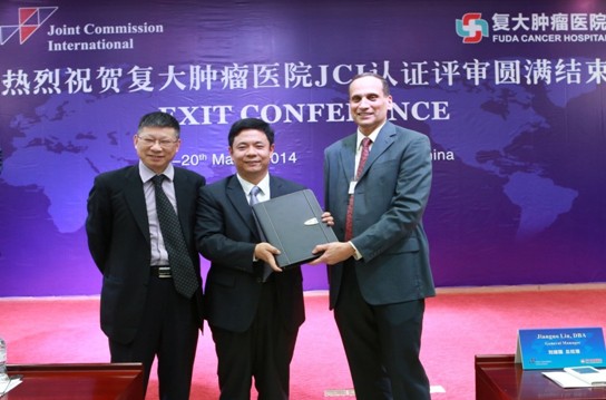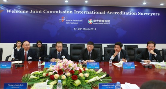 复大肿瘤医院的JCI 认证之路从2011年开始,2年多的时间里,在院领导的正确领导下,全体员工团结协作,按照JCI 标准要求的“患者安全和质量持续改进”的理念来开展工作。2014年3月17日—20日,复大肿瘤医院正式接受JCI 认证评审官的审查,最终顺利通过。