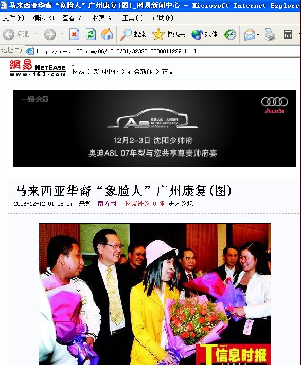 在欢送会上,记者看到两名“象脸人”和手术前相比,有了巨大的改观。洪秀慧现在能清晰地说出“谢谢大家的帮助”,而在手术以前,由于肿瘤已经侵蚀到她的嘴里,她连发音都比较困难。据了解,明年两名象脸人还将来穗进行整容手术。