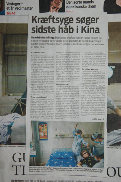 近期,多名丹麦肿瘤患者在我院治疗取得良好的效果,丹麦的《日德兰邮报》的“深度报道”(INDBLIK)栏目的记者专程赴广州采访病人和医生,头版头条大幅报道此次采访过程。