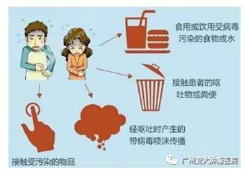 诺如病毒的传播途径多样,感染招数多,包括接触了病人的呕吐物或排泄物,或者间接接触了被呕吐物或排泄物污染的物品等;食用了被诺如病毒污染的食物;饮用了被诺如病毒污染的水。另外,吃凉拌菜、生食贝类食物,吃没有煮熟和煮透的食物,感染诺如病毒的风险非常高。
