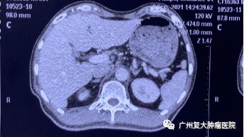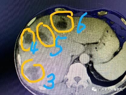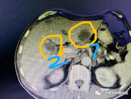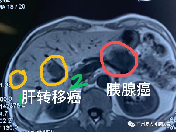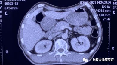 为求进一步诊疗,2020年11月,患者来广州复大肿瘤医院就诊。入院完善相关检查发现:CA-199指标高达2289u/ml(CA-199属胃肠道肿瘤相关抗原,是一种肿瘤标志物,正常值≤37u/ml);肝实质内有多个结节状,较大者约4.3×3.8cm。胰腺体、尾部均有肿块,并邻近肠管、脾静脉局部粘连不清,大小约4.3x3.3cm。