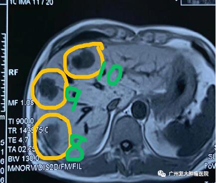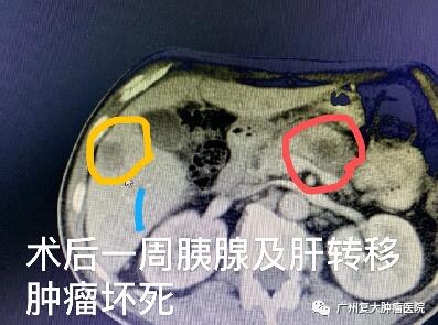 术后一周检查发现,身体各项指标逐步恢复正常。与之前相比,上腹部MRI图像提示胰腺、肝脏肿瘤中心大部分坏死。术后一年复查显示,肿瘤缩小,得到较好的控制。