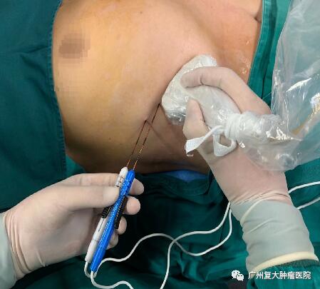而纳米刀消融不依靠高温杀伤肿瘤细胞,故不会产生“热沉效应”,可避免身体组织暴露于极端的高低温,降低对周围组织的潜在伤害。同时,纳米刀消融时间较短,对靶区可多次或分区消融,因此,此时选择纳米刀进行治疗是一个好的选择。