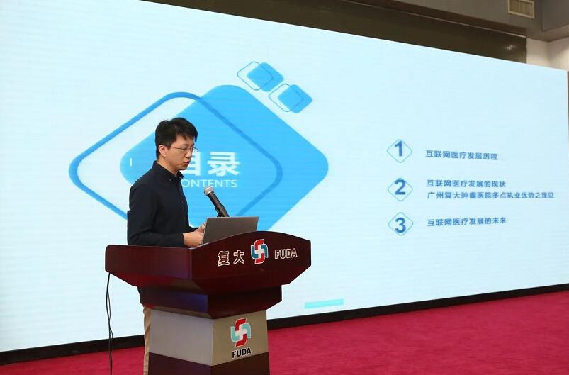 最后,我院党委书记刘建国作总结发言。刘书记指出,作为一个肿瘤研究、治疗、服务平台,广州复大肿瘤医院一直致力于以患者为中心,以延续癌症患者的生命,改善其生活质量为主要目标,治疗了无数癌症患者。依托本院联合多家服务平台,为患者提供优质医疗环境与服务。随着互联网医院相关技术的不断成熟、卫生基础设施不断完善、医疗环境的不断优化、终端设备的不断发展、保障政策的不断制定,广州复大肿瘤医院将继续在合法合规的基础上,为患者、为医疗行业做出更大的贡献。