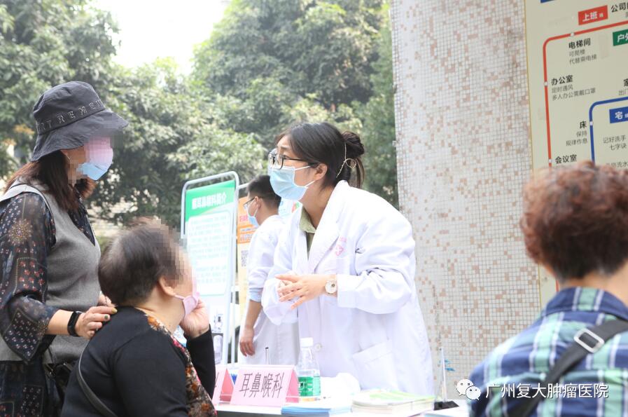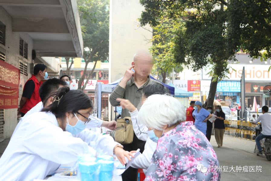 活动当天,广州复大肿瘤医院的医务人员早早地来到了社区义诊场地,摆放好义诊所需的器材,准备迎接居民的到来。义诊服务队涵盖了内科、外科、妇科、肿瘤科、中医科、耳鼻喉科及医保咨询等。活动开始后,居民纷纷前来,在工作人员的合理安排下,大家有序地进行了登记、检查,医护人员非常认真、投入,尽心尽责为他们答疑解忧。