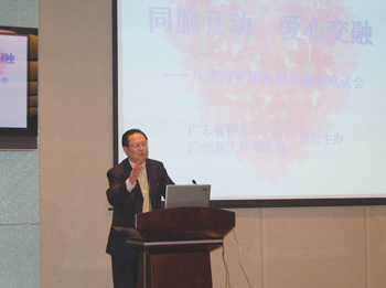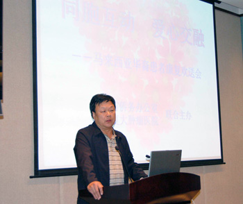 会议由广东省侨务办公室副巡视员吴行赐先生,会议开始之前,广东省侨务办公室和广州复大肿瘤医院纷纷赠送了鲜花给洪秀慧、陈嘉欣。在大会上,播放了洪秀慧、陈嘉欣治疗康复过程的VCD片段。其后,广州复大肿瘤医院徐克成院长作了精彩发言。在场的所有人员都被深深感动。听完徐克成教授的讲话,马来西亚驻广州总领馆Mr. Chai Ching Hau领事和Madam Roslina Long领事紧紧握住院长的手。
