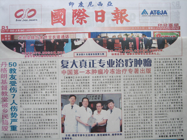 希望我们能共同关爱生命,关注癌症治疗新技术。如有望更进一步了解肿瘤冷冻治疗技术特点者,请与本报或广州复大肿瘤医院驻雅加达办事处刘正平医生联系( 081386600112; 081519184755; 021-68805932);