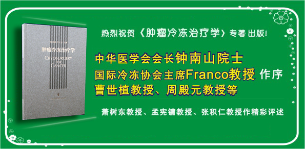 《肿瘤冷冻治疗学》全书50万字,彩色印刷,图文并茂。钟南山院士评价此书为"我国第一本冷冻治疗专著,反映了当代肿瘤治疗的最新成果,对临床研究和实践具有指导价值。" 的确,当今世界除美国的癌症发病率刚开始出现下降外,其它各地还均成上升趋势,除了需要加强宣传积极预防外,对癌症应用新技术治疗尤为重要。