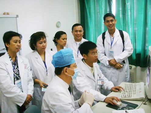 菲律宾医生并探望了在院病人,询问了病人的治疗效果,屡次表示回国后要将这些先进技术介绍给菲律宾癌症病人,也希望菲律宾能渐渐引进这些技术帮助当地病人。