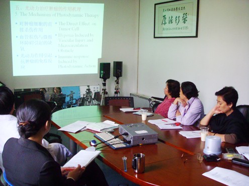 27-28日,光动力治疗专家曹教授、介入治疗专家周强、免疫疗法专家周红桃、中医杨博士等分别为他们介绍了光动力疗法、介入疗法、免疫疗法、中医药学辅助疗法。五名医生对接触到的各种肿瘤治疗新技术感到惊奇,“we~re all impressed”。