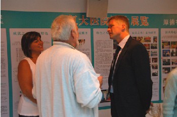 2009年11月10日下午,丹麦王国驻广州领事馆总领事欧阳博先生(Jens Alsbirk)偕夫人尤汉娜(Hanne K.Alsbirk)一行访问我院。欧阳博先生和夫人看望了来自丹麦的病人,并同病人和家属进行了座谈。欧阳博先生详细了解了丹麦病人尤其是胰腺癌患者在我院的治疗及生活情况,并非常感谢我院给予丹麦病人的治疗以及生活上的照顾和帮助。