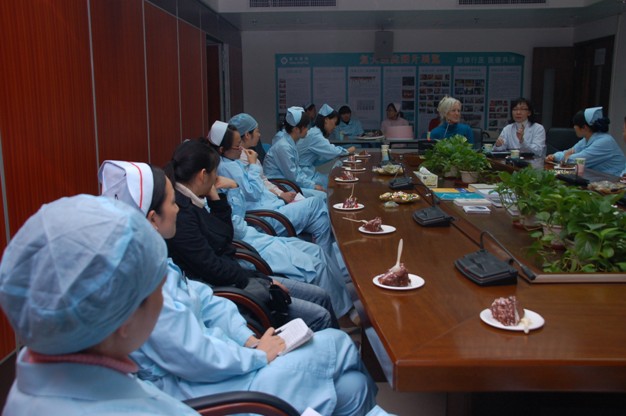 11月21日下午,Annie与我院部分护理人员就护理与关爱病人进行学术研讨,讨论针对不同国籍、不同文化病人,怎样使护理服务达到病人满意的境界,并且分享了她在指导病人用健康生活方式来控制疼痛的成果。