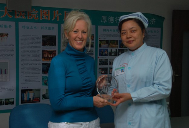 Annie Rasmussen是一位临床经验丰富的丹麦护士长 于2009年11月19日至24日来我院考察学习。她曾在美国、欧洲等国家学习工作过。在我院Annie亲切地与丹麦、菲律滨等外籍病人交流,当她了解到病人在我院的治疗疗效后,肯定地说:贵院微创治疗及服务非常好,赞同病人多吃青菜等有机食物少吃肉的健康饮食习惯。Annie目前的愿望是可以帮助更多的丹麦癌症患者获得这样的治疗服务,特别是对在丹麦没有治疗可做的患者献上这份爱心。