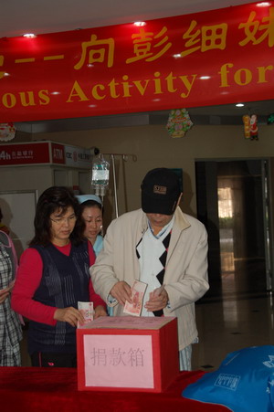 此举感动了医院里的许多外国籍病人及其家属,他们也踊跃参加了这次献爱心活动,有位外籍患者,在家人的搀扶下,向其捐款,还用不太流利的中国话――“你要加油!”,鼓励彭细妹。